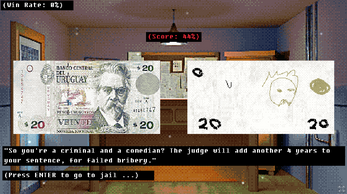 You're a foreigner in another country. You were caught by the local authorities, carrying some illegal stuff. You must bribe your way out of this, but you have no money! Your only way out of this is to draw money. You have 20 seconds before the policeman catches on. If you fail, you go to jail!
